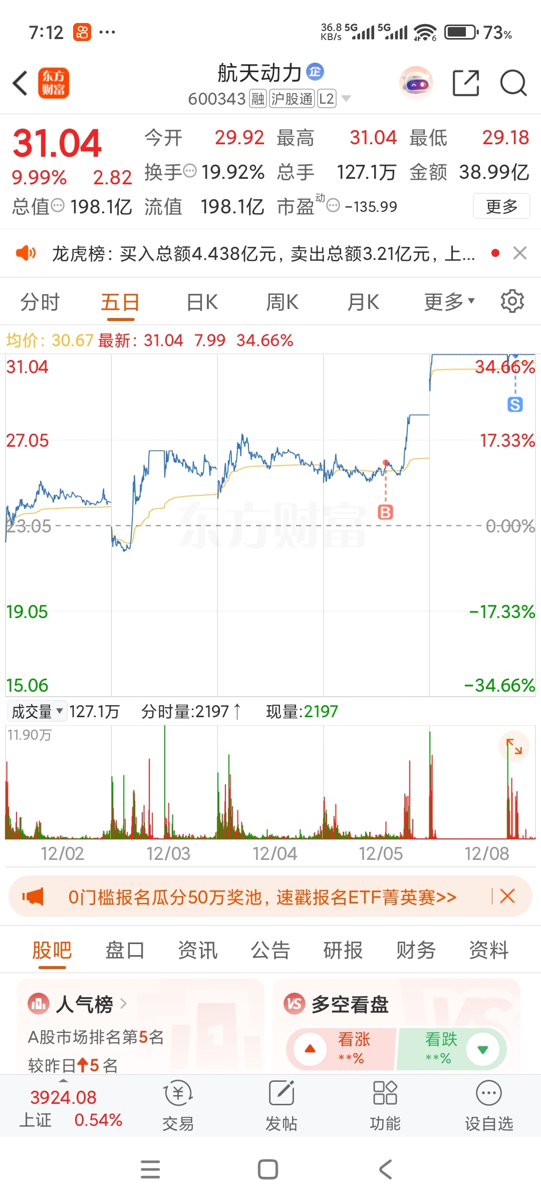 $航天动力(SH600343)$ 回封板炸板要开的时候直接S了。以后涨再高与我无关,认知内就好了!