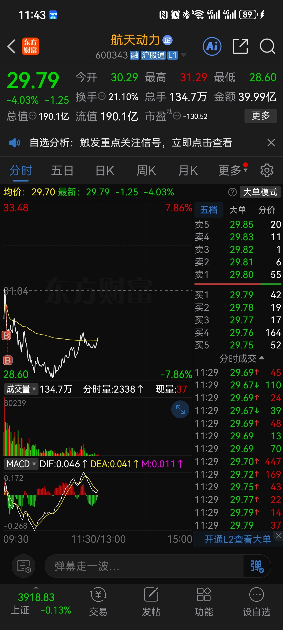 $航天动力(SH600343)$ 为什么敢买你,因为航发展涨得已经够高了,在大涨就要到200异动了,而航机电又不是正宗的商业航天板块,只是蹭名字而已,只有你才能做航发展的伴身龙,位置又不高,看这架势你不会今天3连板吧!我才买了5成仓啊!计划是明天回踩5日线全仓梭哈的哦!