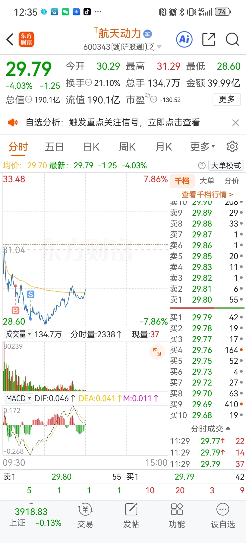 $航天动力(SH600343)$ 今天涨停,我都笑不出来