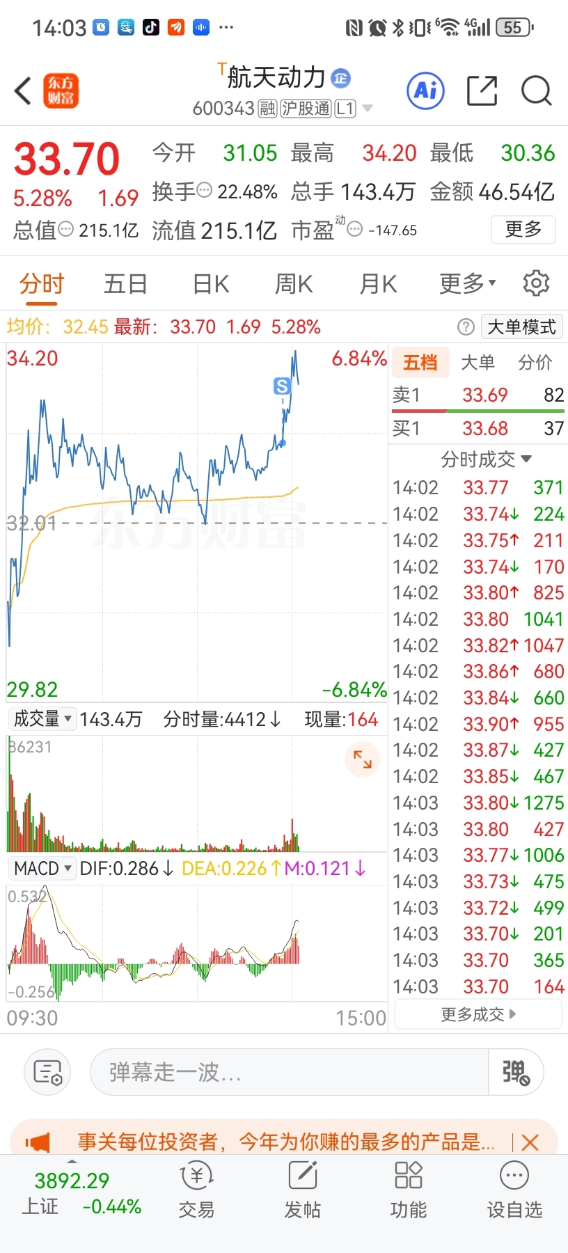 $航天动力(SH600343)$ 大家别走,我是风向标,我卖了,绝对还有涨,,,,,刚刚我一卖,10秒内就涨了2个点