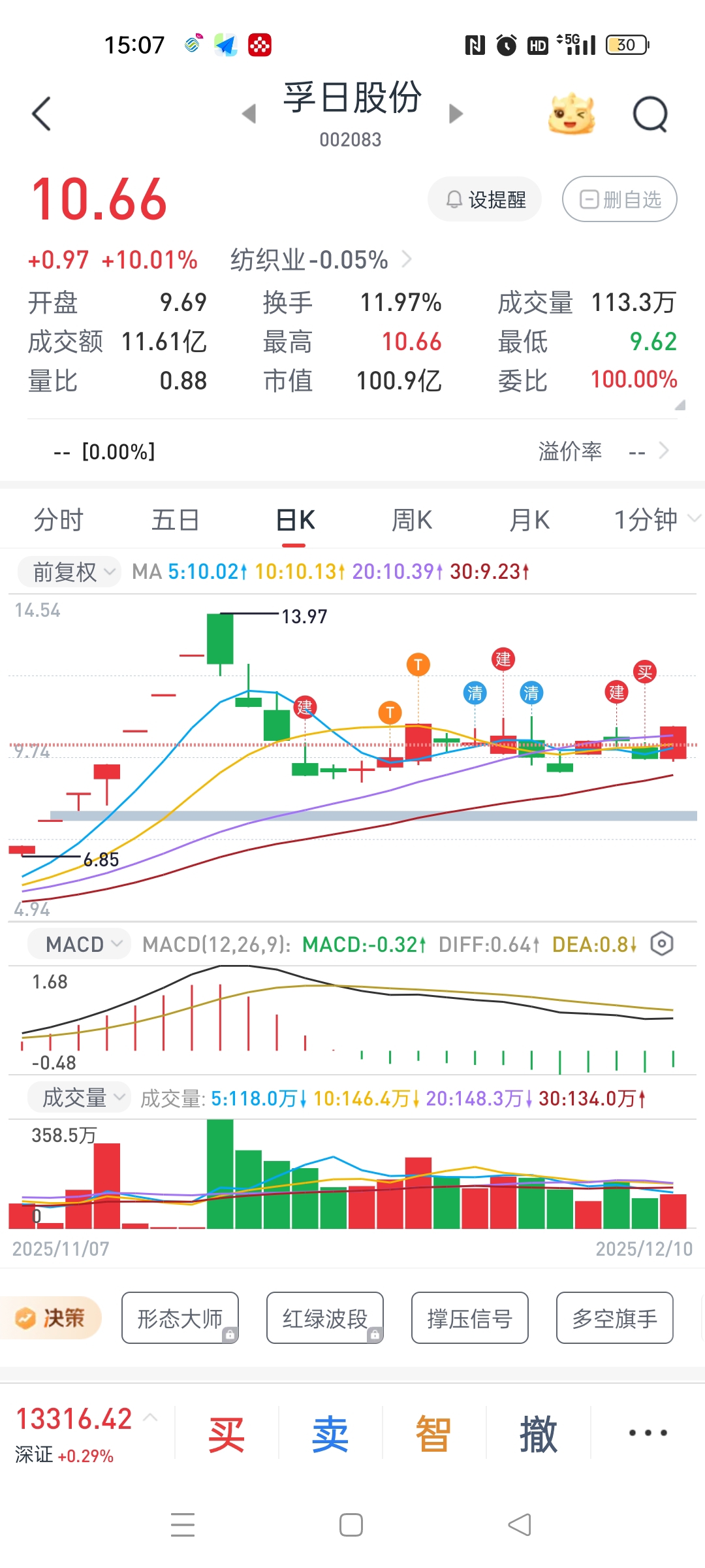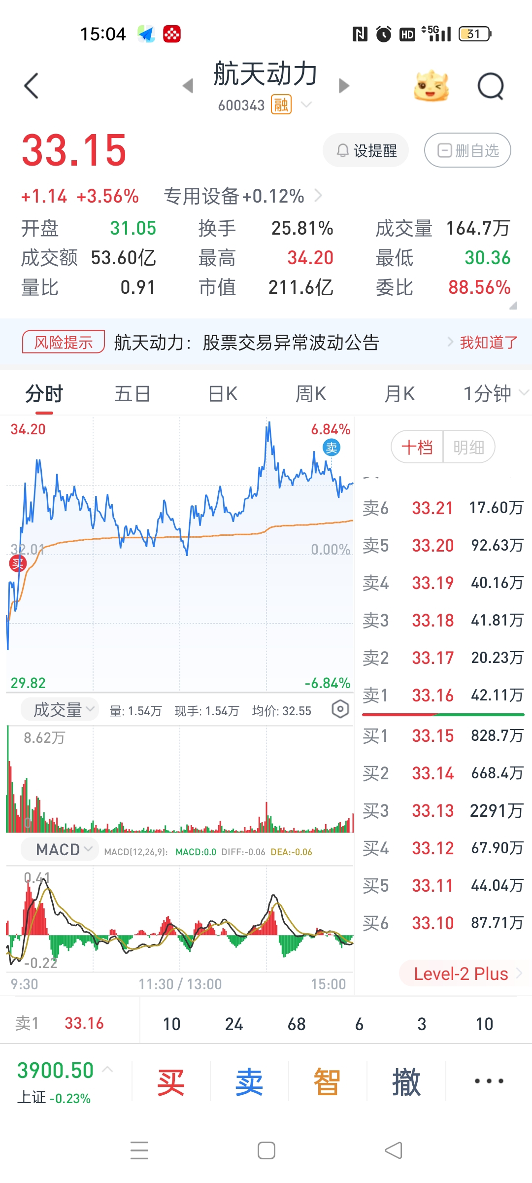 $航天动力(SH600343)$ 今天把昨天水下买的1100股卖了,还剩今天买的600股和底仓。今天和昨天一样太贪了,都没卖在最佳位置。中午那波绿,差点清仓了。同时感谢孚日,只要9块多进,能喝点汤。