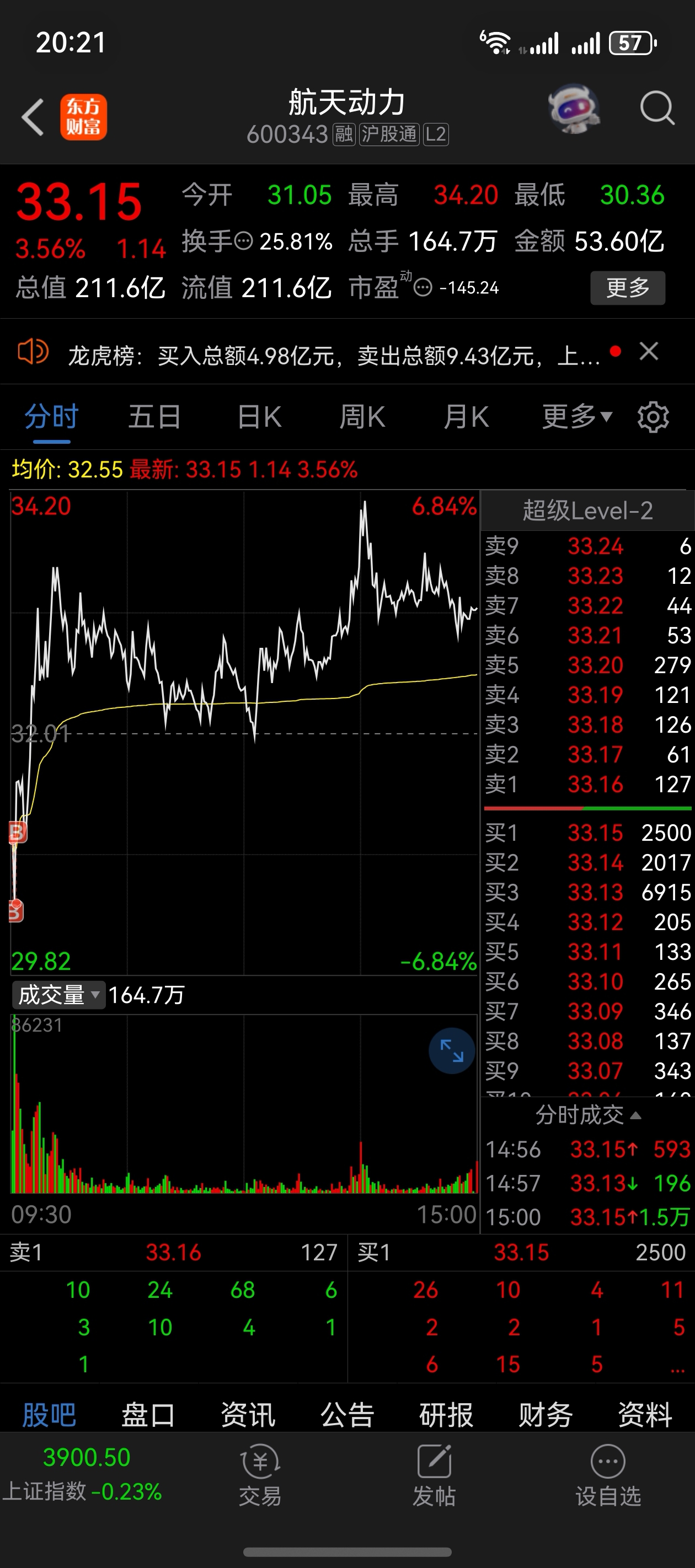 $航天动力(SH600343)$ 今天没T,满仓继续看好商业航天趋势龙头。
