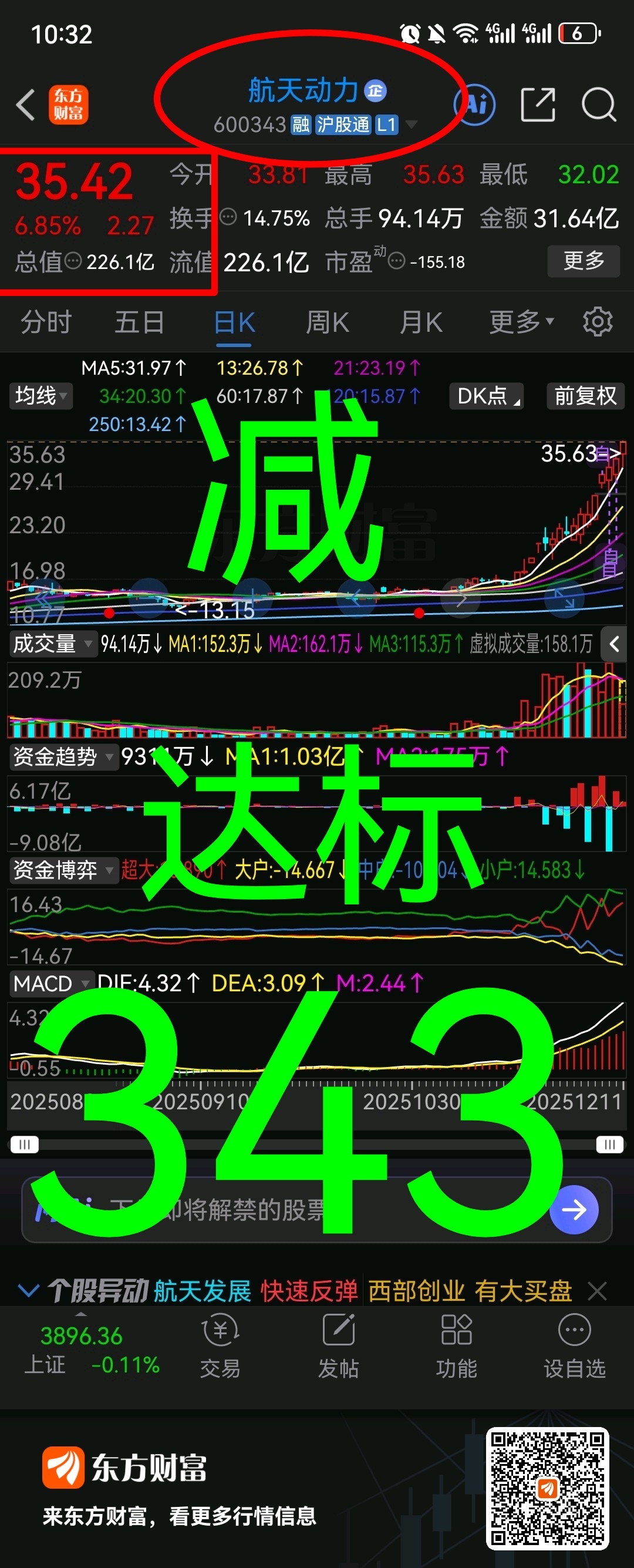 拉升达标600343航天动力盘中继续找点减仓...