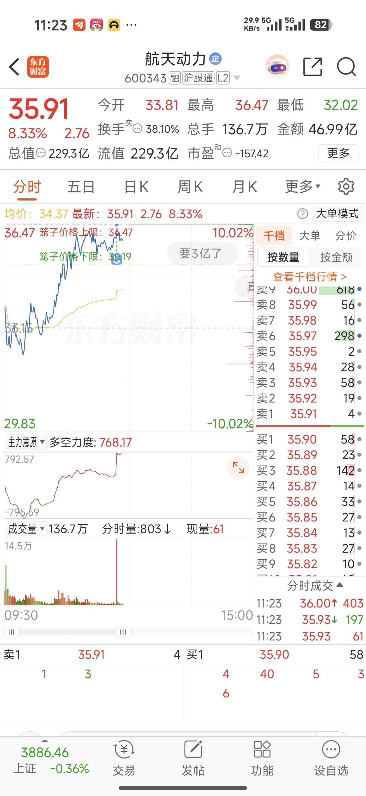 $航天动力(SH600343)$ 怎么回事,挂涨停卖了出去