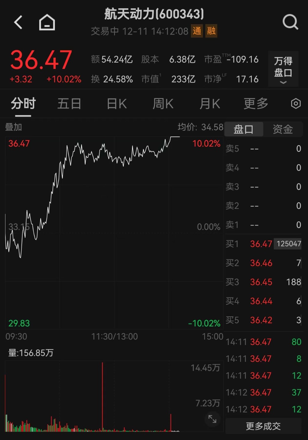 板块异动|商业航天概念板块午后再活跃 航天动力封板