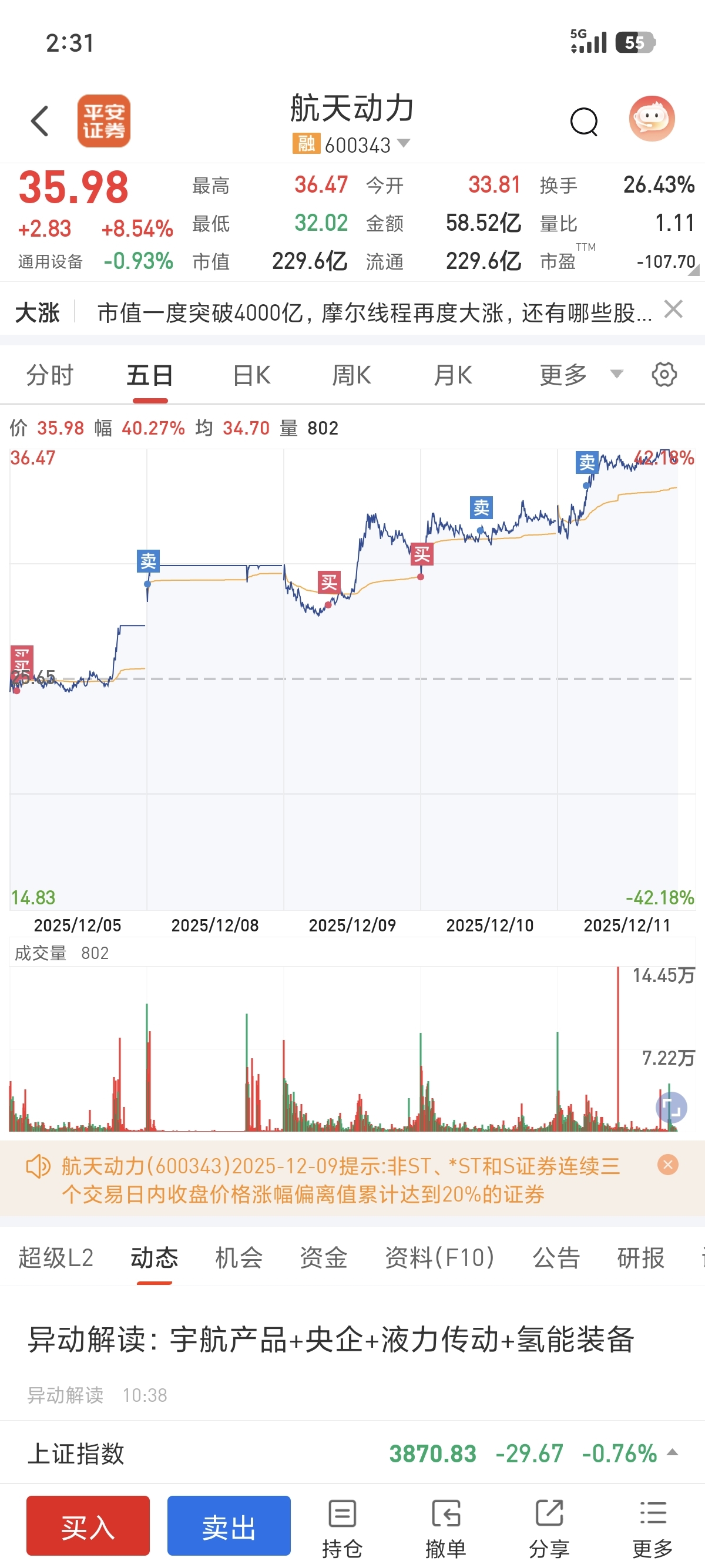 $航天动力(SH600343)$ 强的没边!今天低点没买怕是每天低开养成习惯套人的套路。聪明反被聪明误!!