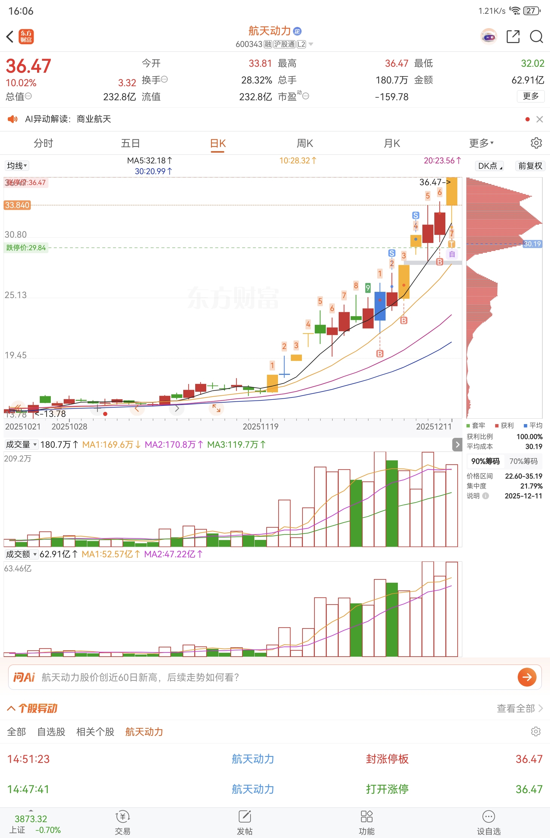 $航天动力(SH600343)$ 好票哦,每次都不辜负我