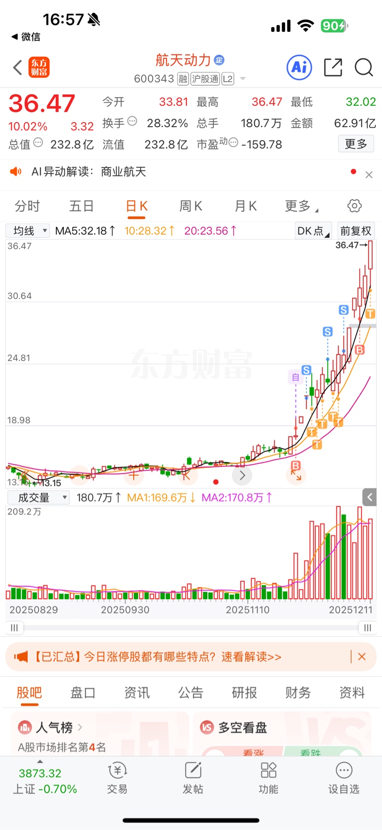 $航天动力(SH600343)$ 航天动力走趋势,今天不该封板,明天不是涨停,就是深水