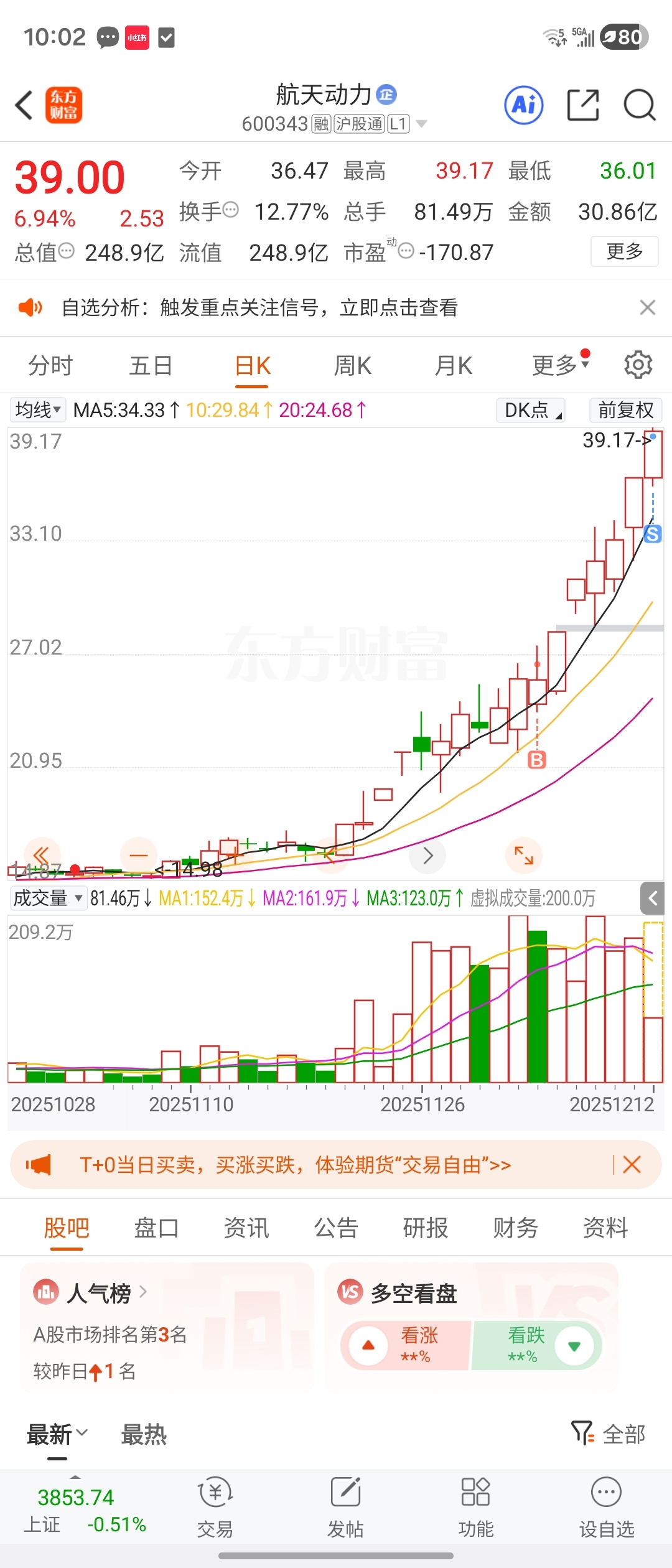 $航天动力(SH600343)$ 赚了快50个点,安全下车
