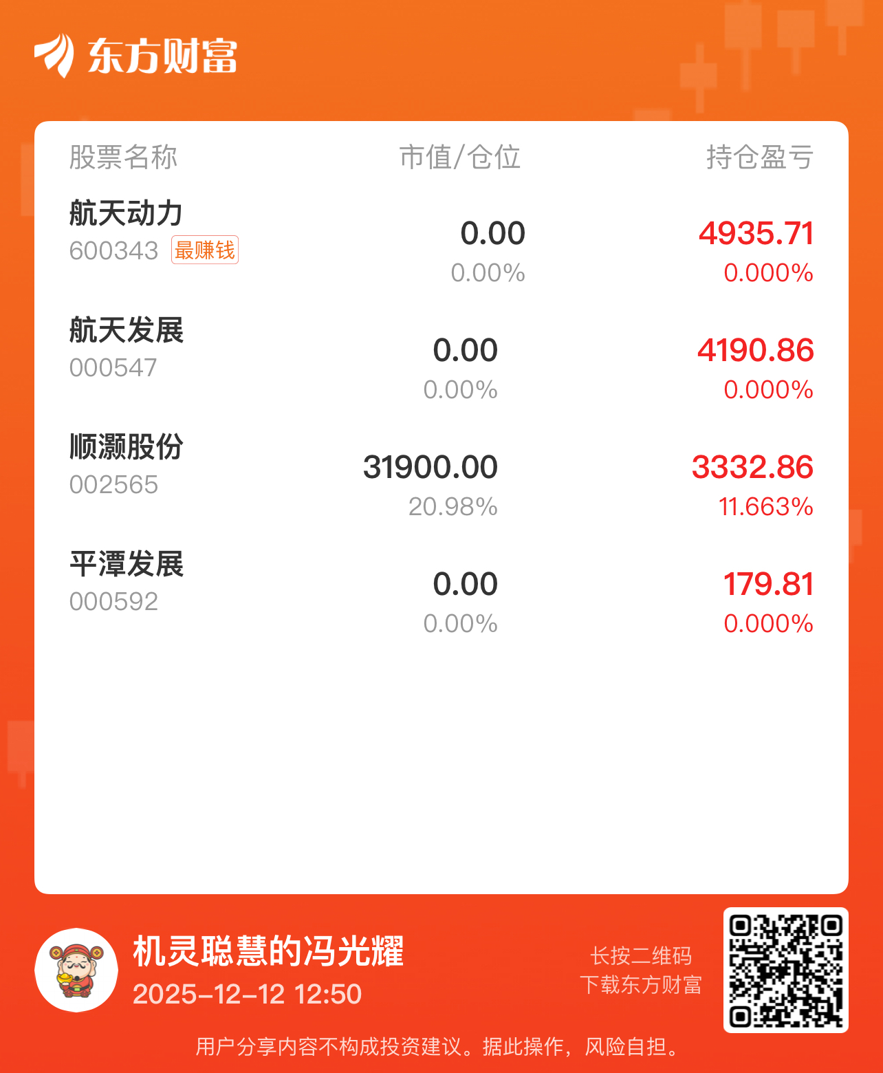 持仓公开最赚钱股票:今作:下午继续航天还会热,打算加个航天科技