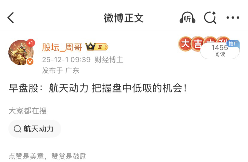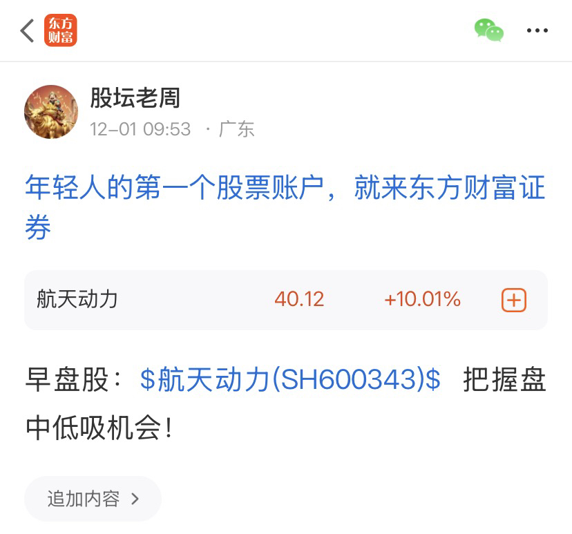 拒绝马后炮;附原话图:12.1公开机会的航天动力今日强者恒强再度涨停!我还是那句