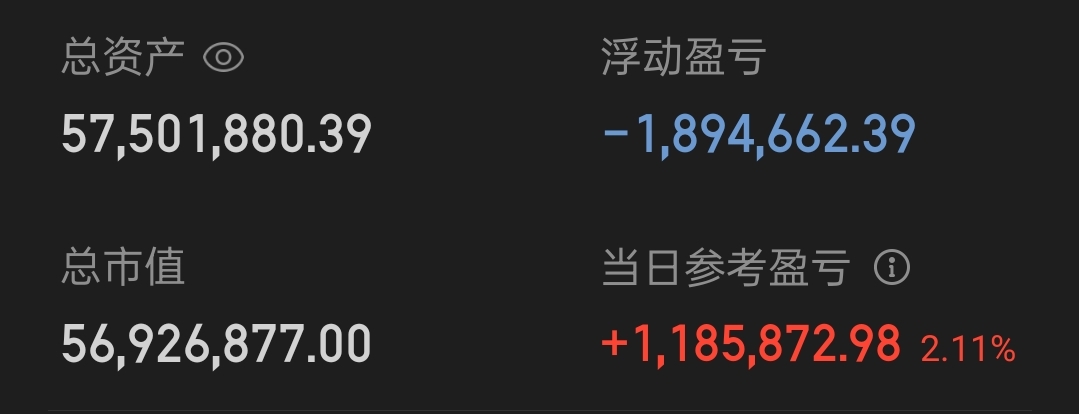 少帅日记;初始资产:7000万;今日战况:+2.11%;尾盘环境好差,盈利从4.