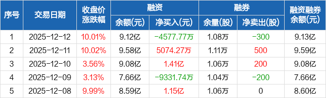 航天动力:融资净偿还4577.77万元,融资余额9.12亿元(12-12)