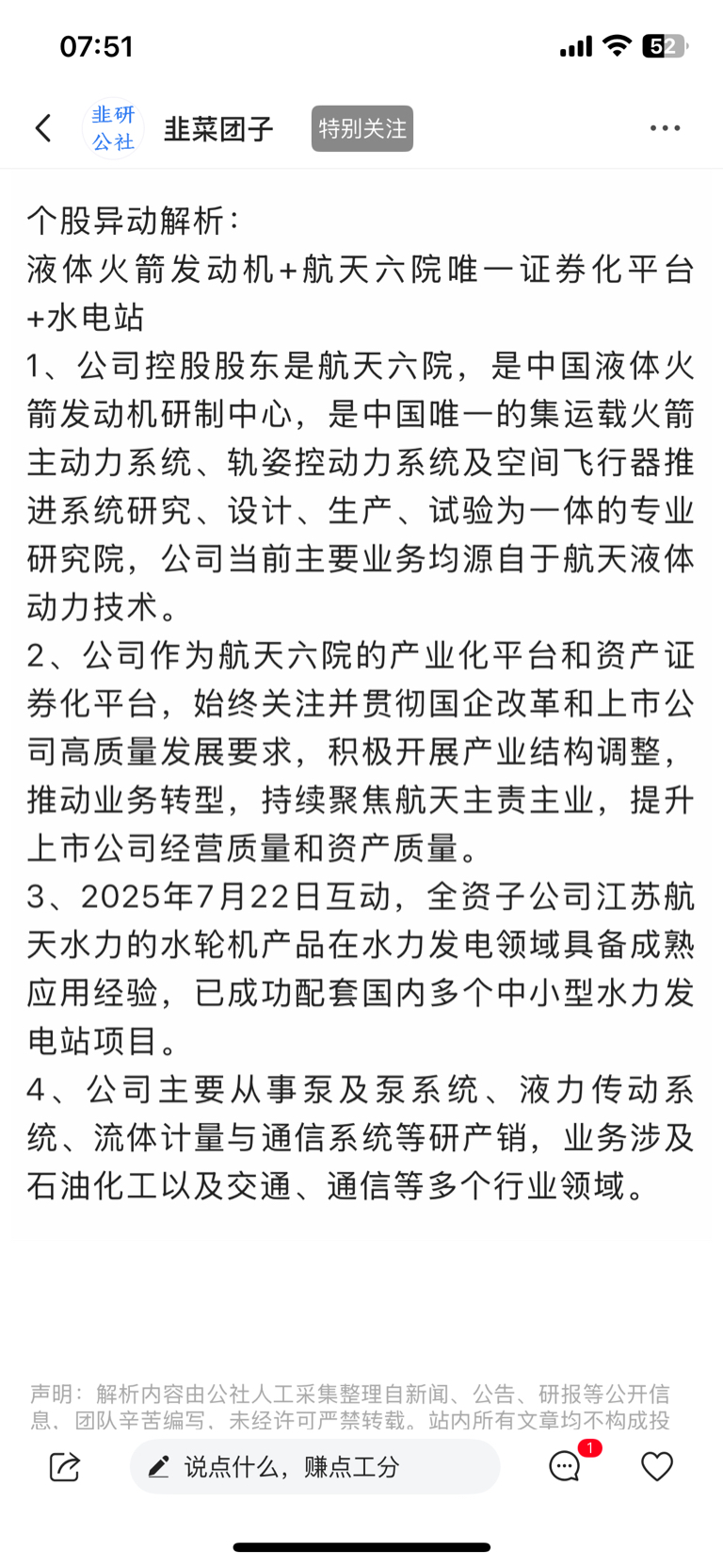 航天动力炒的是控股股东航天六院资产注入的预期