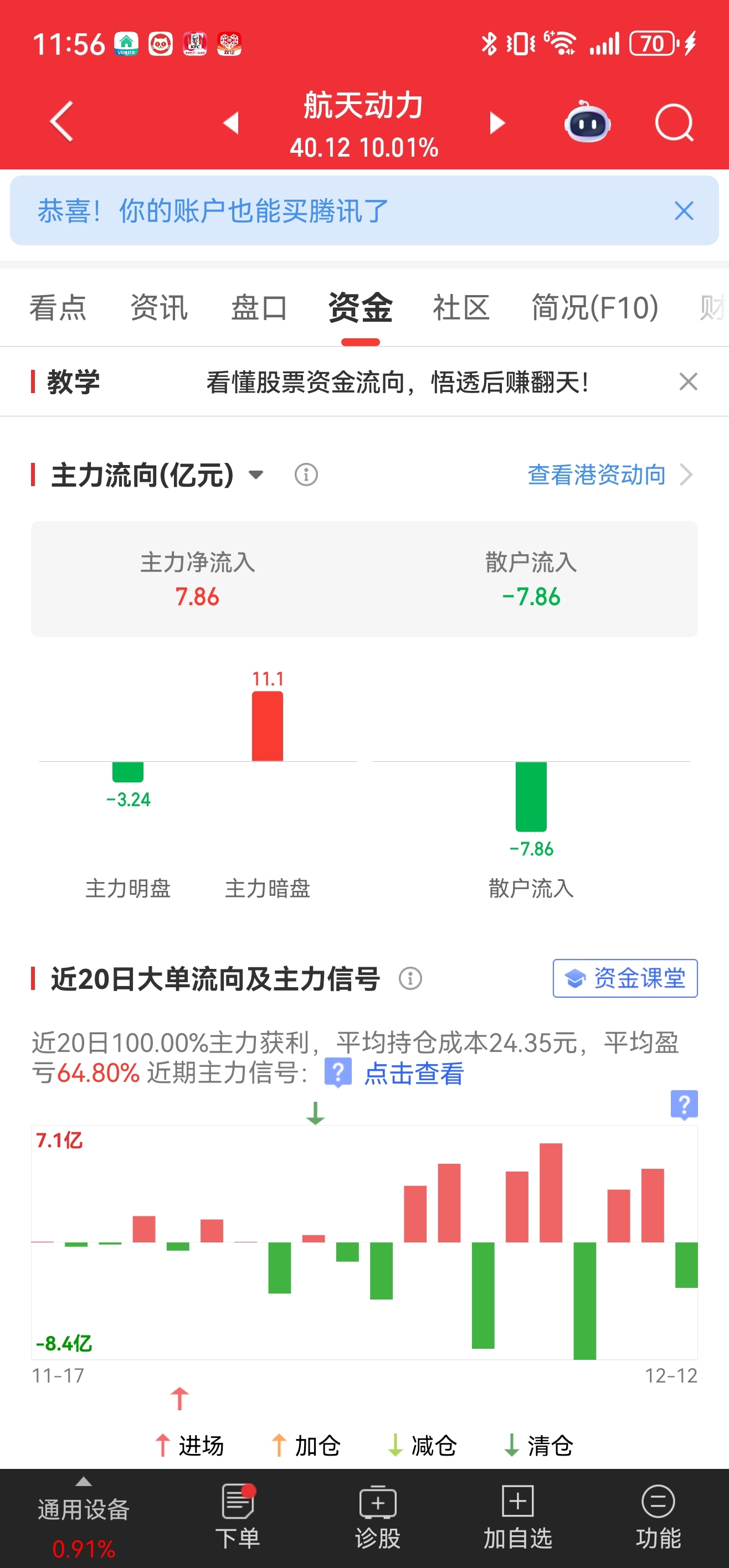 $航天动力(SH600343)$ 给兄弟们稳稳,暗盘上周五进了11.1亿