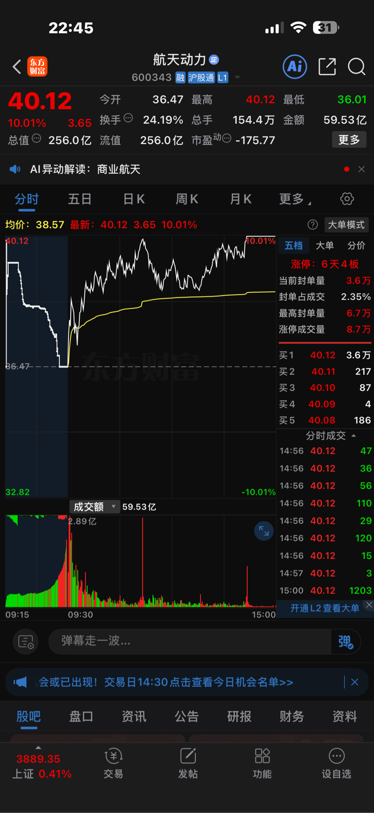 $航天动力(SH600343)$ 明天也一样的走法,这股就是靠充分换手上去的,不太可能直接一字封板,走加速的话就麻烦了