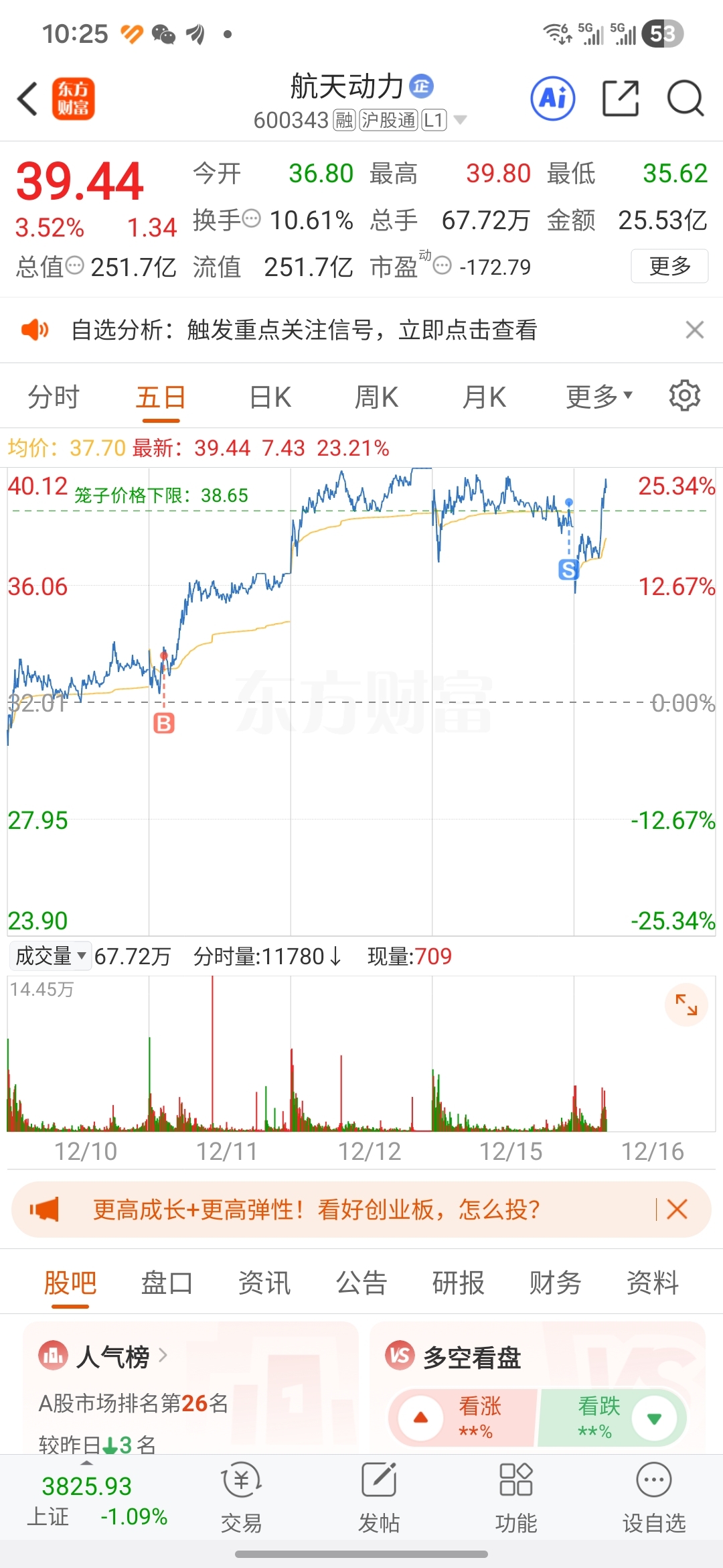 $航天动力(SH600343)$ 太强了,可惜没接回来