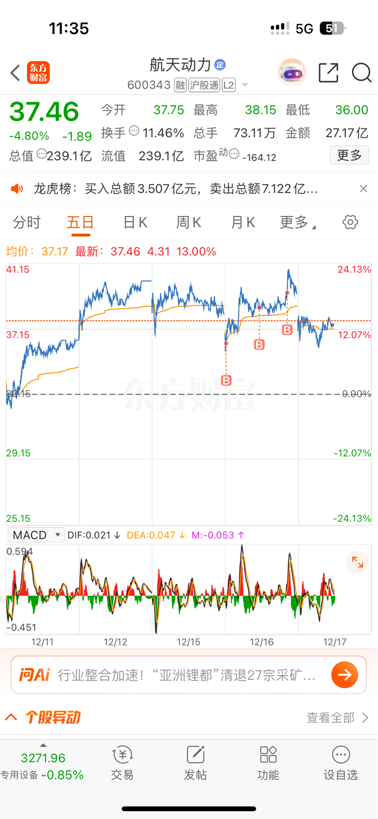 $航天动力(SH600343)$ 以为昨天抄底,结果还有底