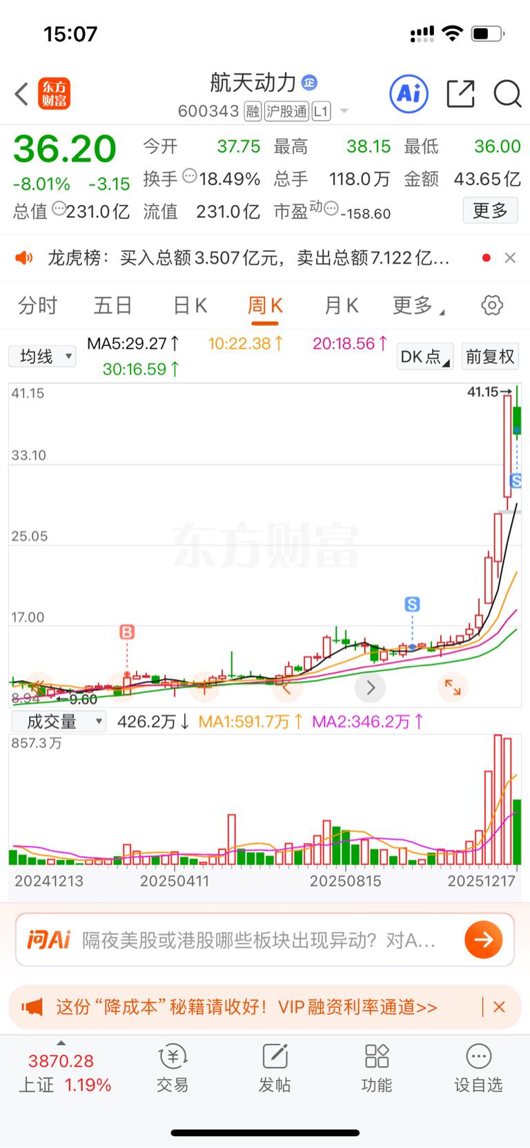 $航天动力(SH600343)$ 破线5日了,没办法,减仓一半