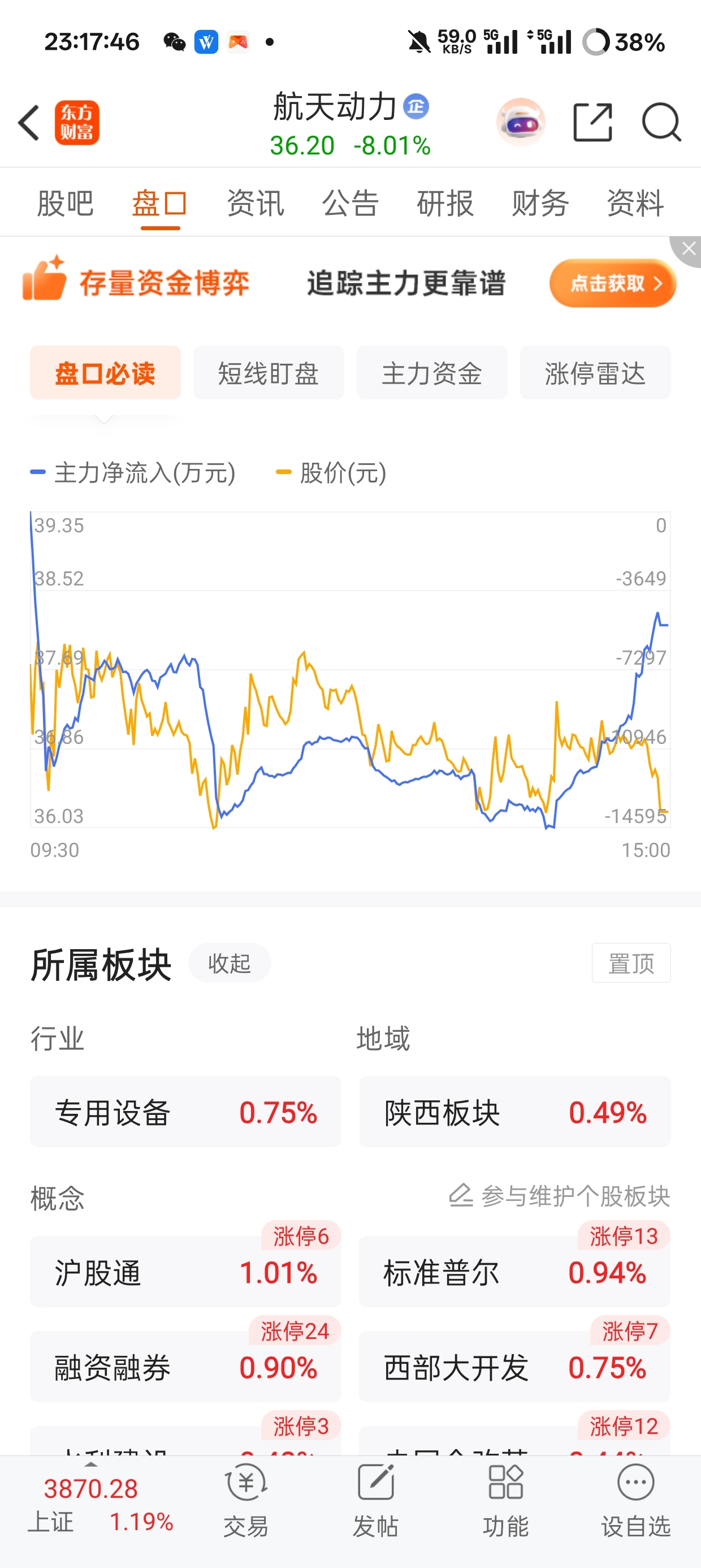 $航天动力(SH600343)$ 看一下14点16到收盘跑进来了多少资金?怕毛啊