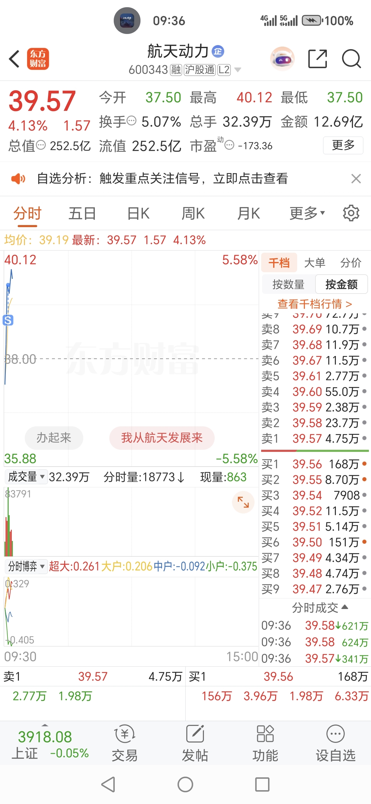 $航天动力(SH600343)$ 卖飞啦,赚了再说