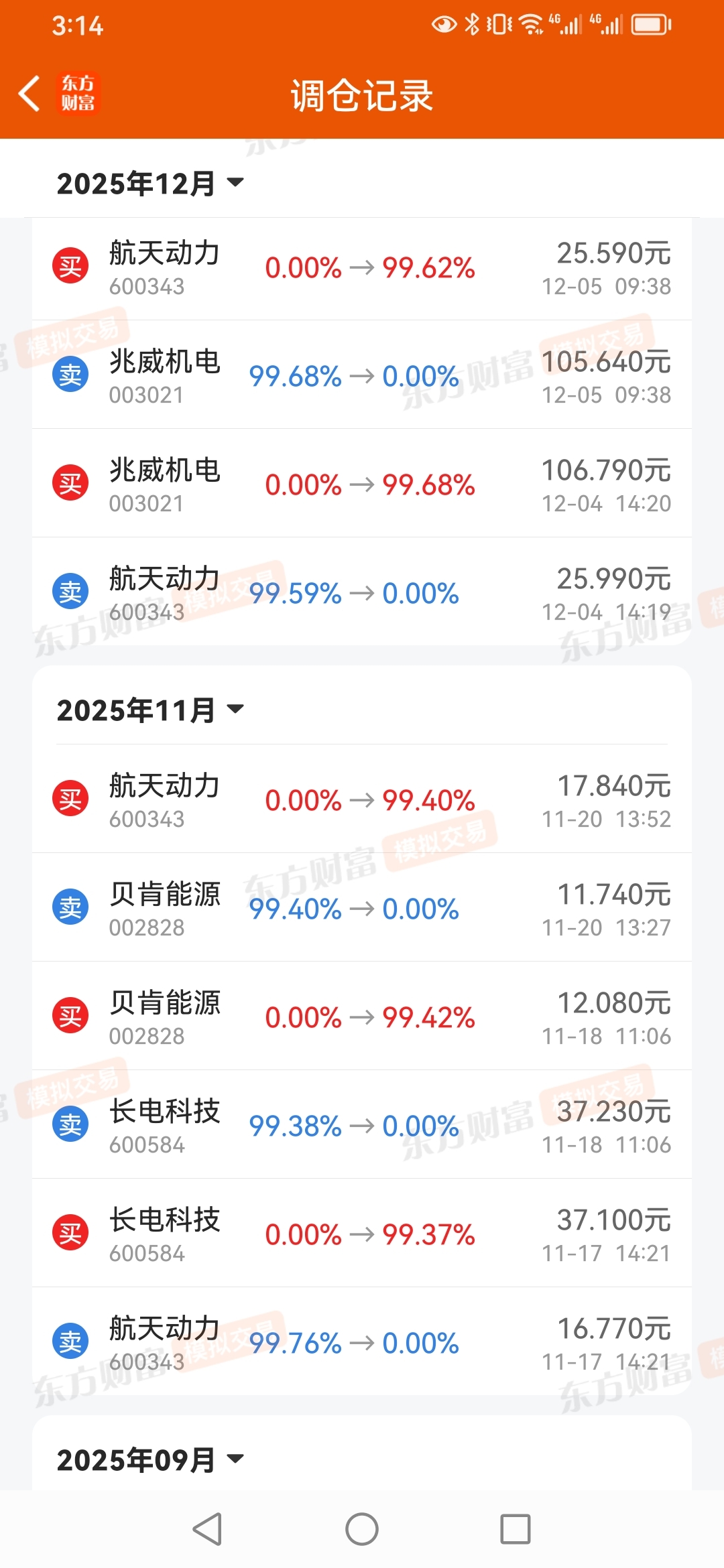@妙想@追求今天日进斗金@财气盈盈秋水游资军哥买进,航天动力。持续买进,卖出。这