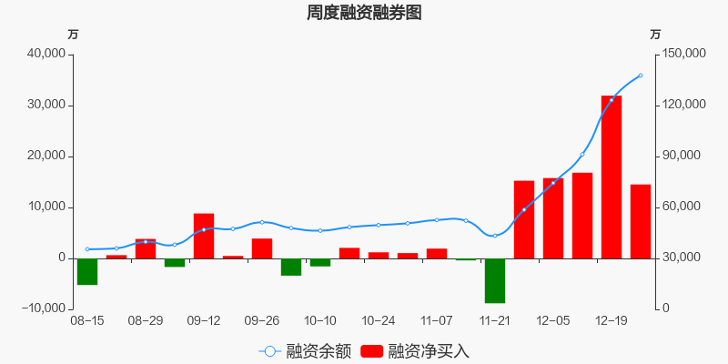 航天动力本周(2025/12/22-2025/12/26)累计涨幅达17.56%,截至12月26日最新股价报收45.40元。从增量上来看,12月22日至12月26日融资买入交易规模33.47亿元,融资偿还规模32.02亿元,期内融资净买入1.45亿元。从存量上来看,截止12月28日,航天动力融资融券余额13.78亿元,其中融资余额规模13.77亿元,融券余额规模87.62万元。