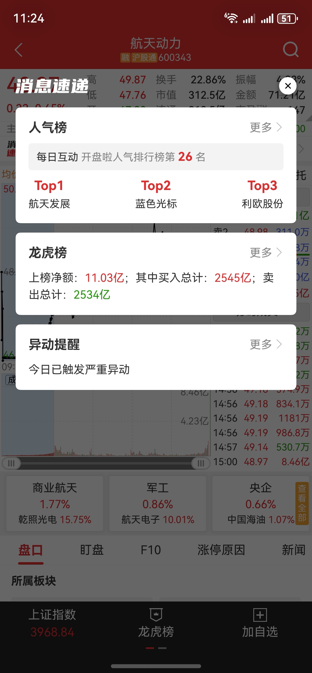 $航天动力(SH600343)$ 尾盘卖了8个亿是干嘛啊,周一咋办
