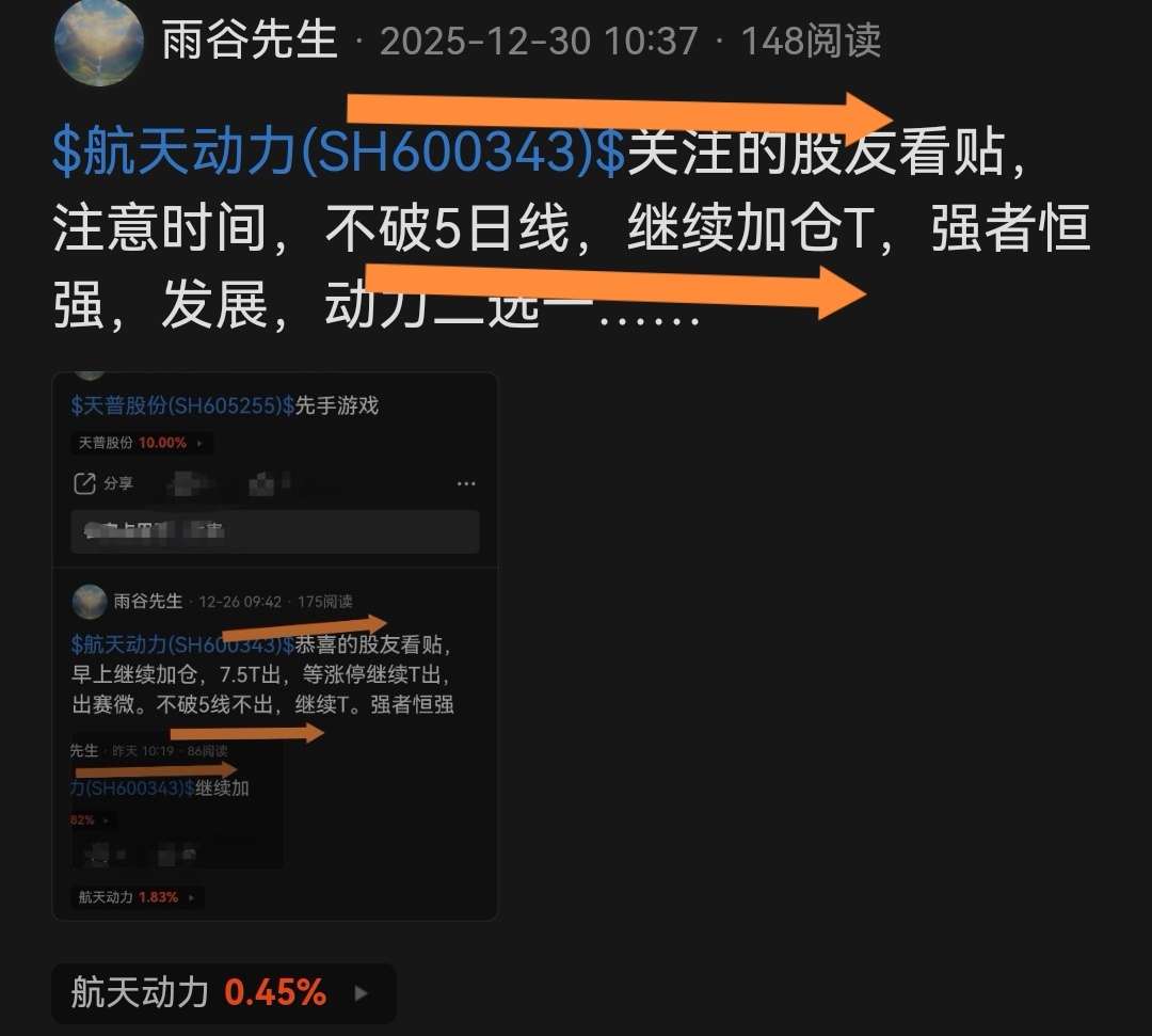 $航天动力(SH600343)$ 关注的股友看贴,今天早上不加仓了,冲高减不破5线不出。