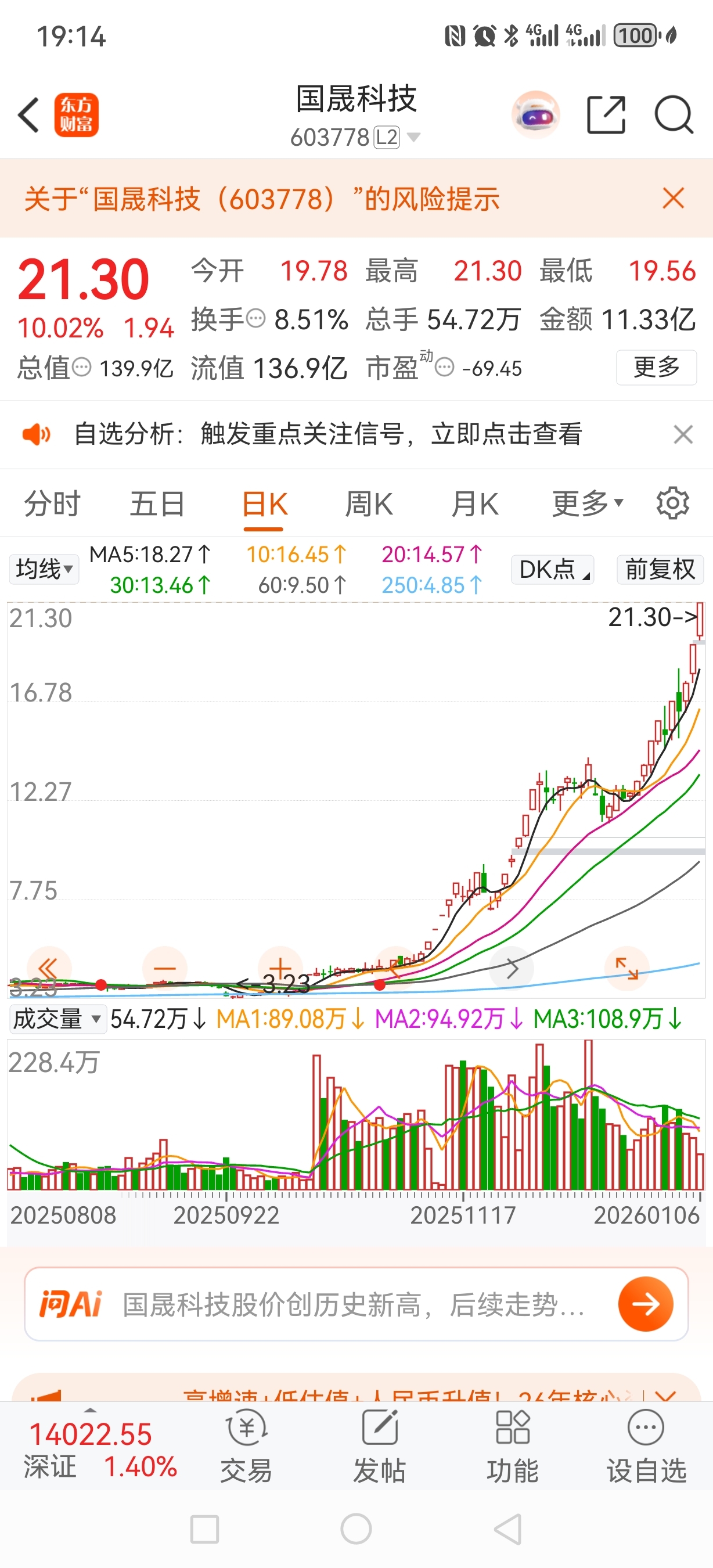 国晟科技,天天异动!一老涨停!这个才多高呀