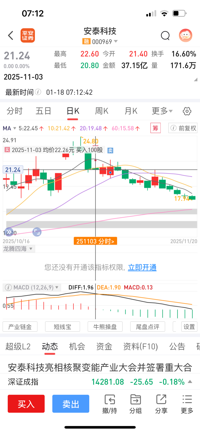 没事复盘看了一下安泰科技,当初22买的,后面最高涨到31,最低17块多,航天动力