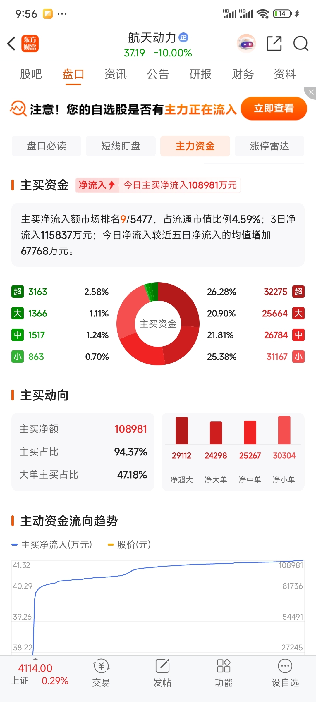 $航天动力(SH600343)$ 净买10个亿?