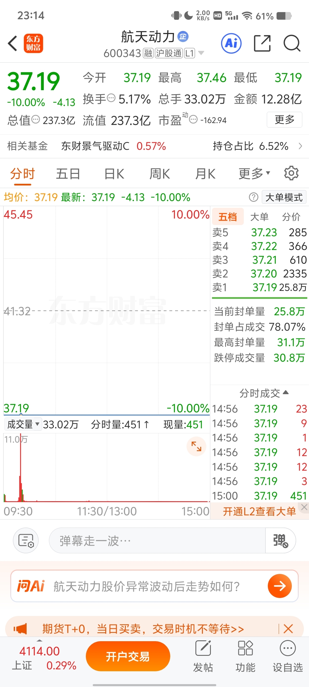 比起还没有开板,大部分都跑不出来的跌停板,航天还是硬,大部分都跑了,只有小部分坚