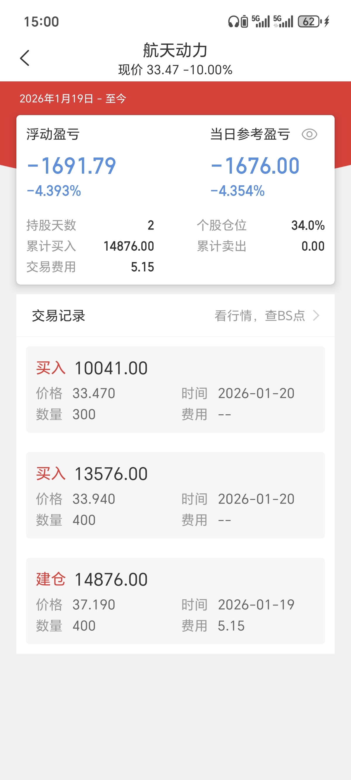 $航天动力(SH600343)$ 再买1500股