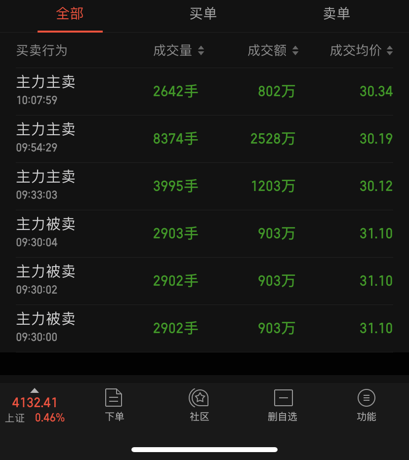 800以上的只有大卖单没有大买单