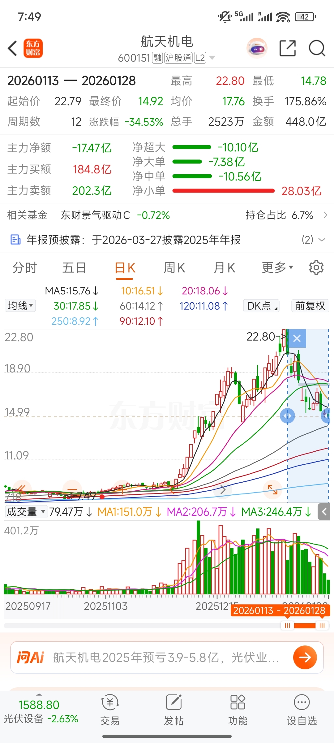 $航天动力(SH600343)$$航天发展(SZ000547)$$航天科技(SZ000901)$降温政策以来,科技,科工旗下标的跌幅一览
