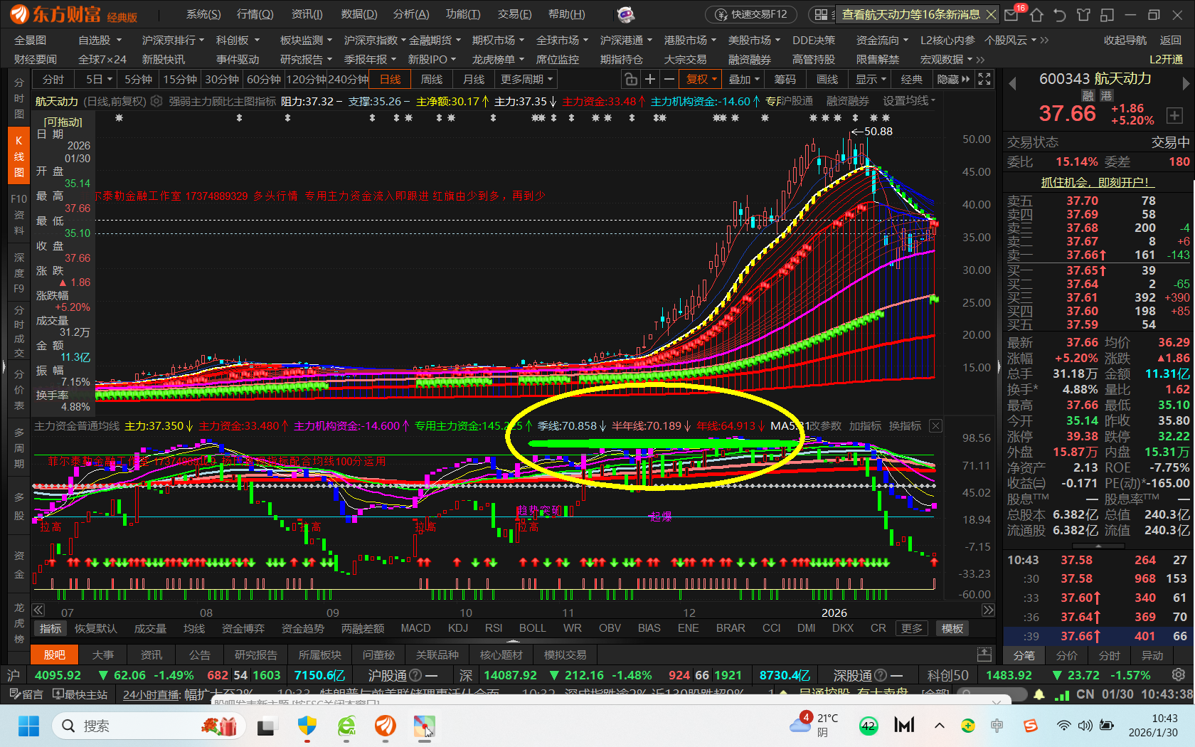 航天动力,股价怎么跌的,就会怎么起来!!!!我的理由还是主力资金大均线保持多头排列,年线大于60,就是说明主力的资金成本很高,我们就应该股价越跌越买!!!!现在不是就起来了吗!!!!~!