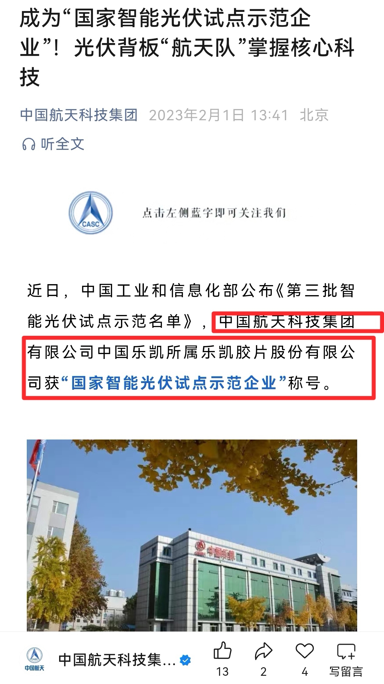$航天动力(SH600343)$ $航天发展(SZ000547)$ $航发科技(SH600391)$ 中国航天科技集团官网:光伏背板"航天队"掌握核心科技!其实航天科技集团控股公司--乐凯胶片才是真正的太空光伏概念吧??