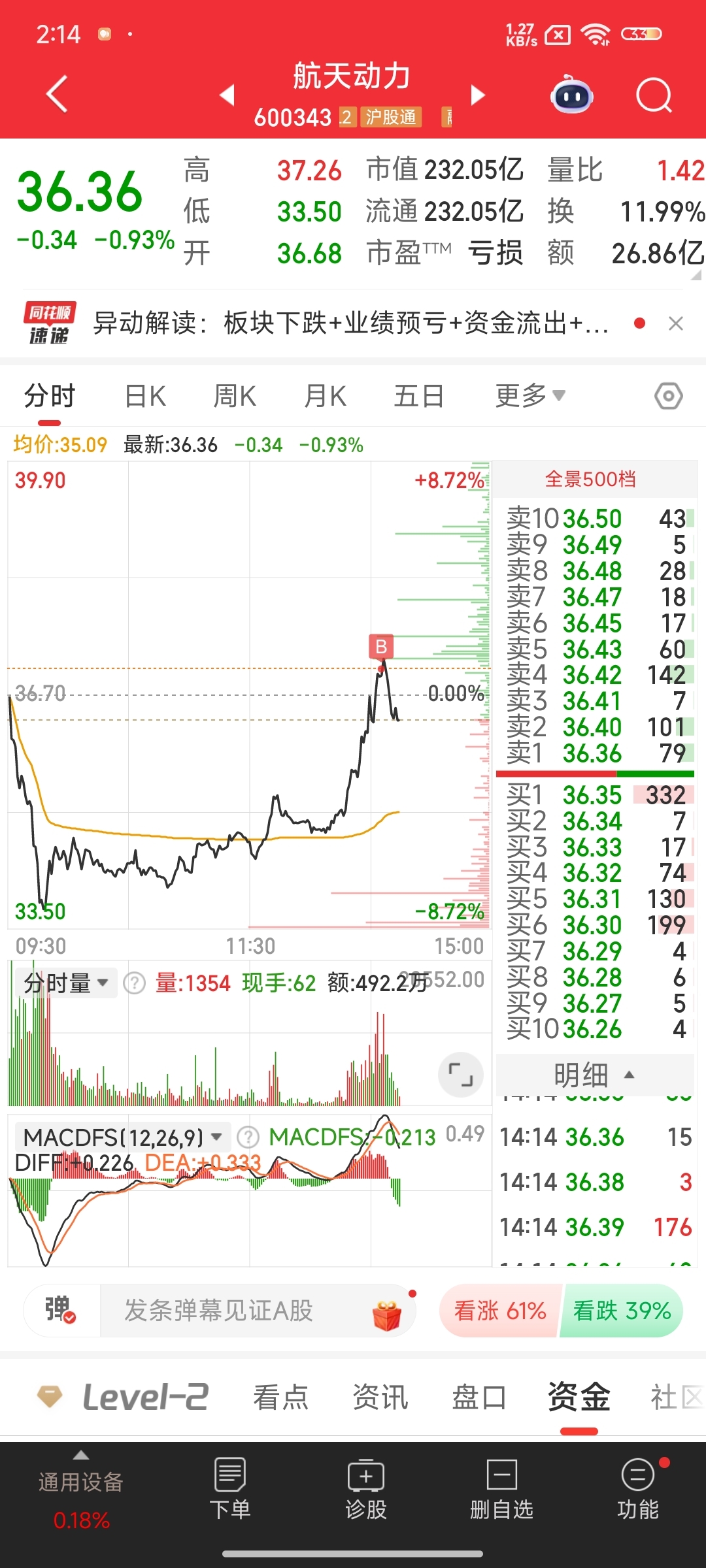 $航天动力(SH600343)$ 对不起兄弟们,被我买下来了