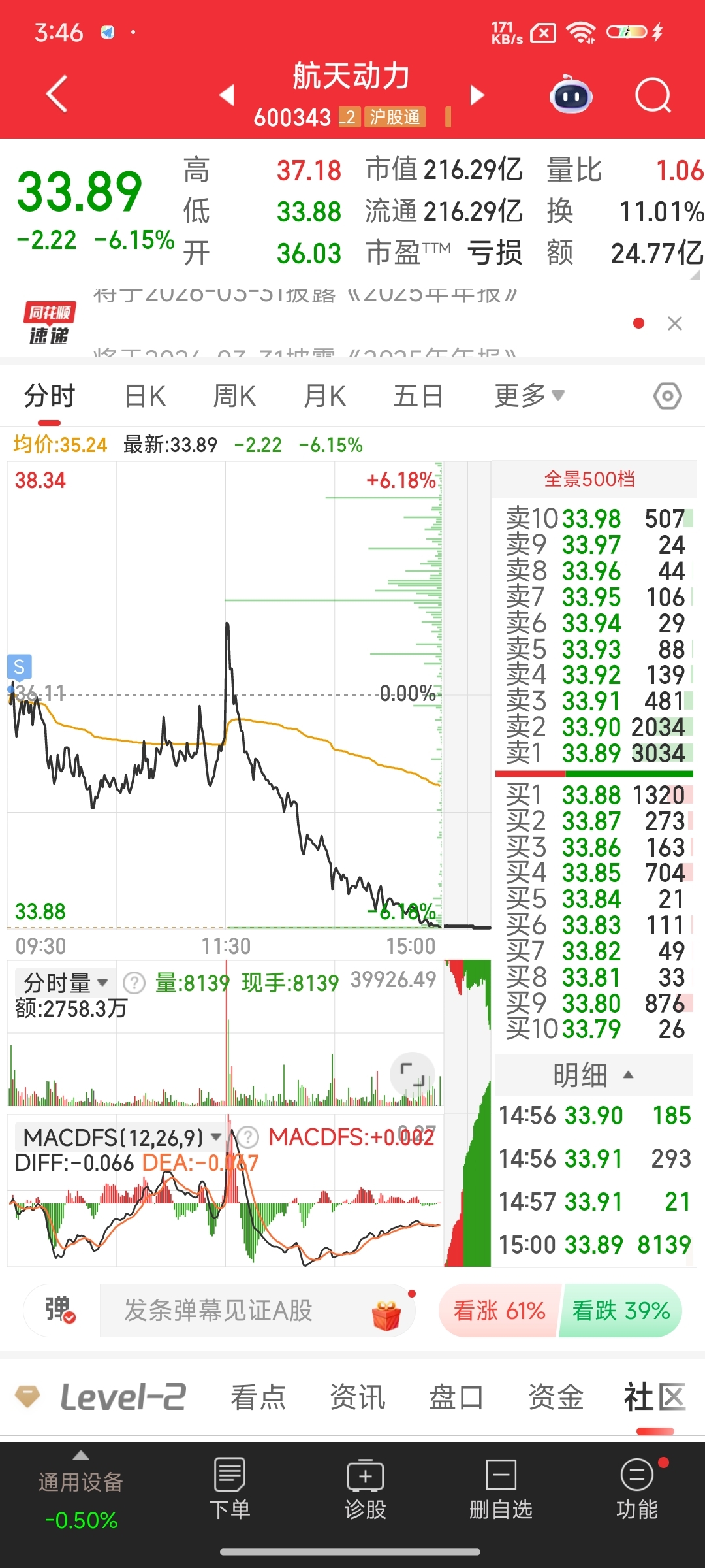 $航天动力(SH600343)$ 还好跑的快,昨天手贱追进去,买完就后悔了