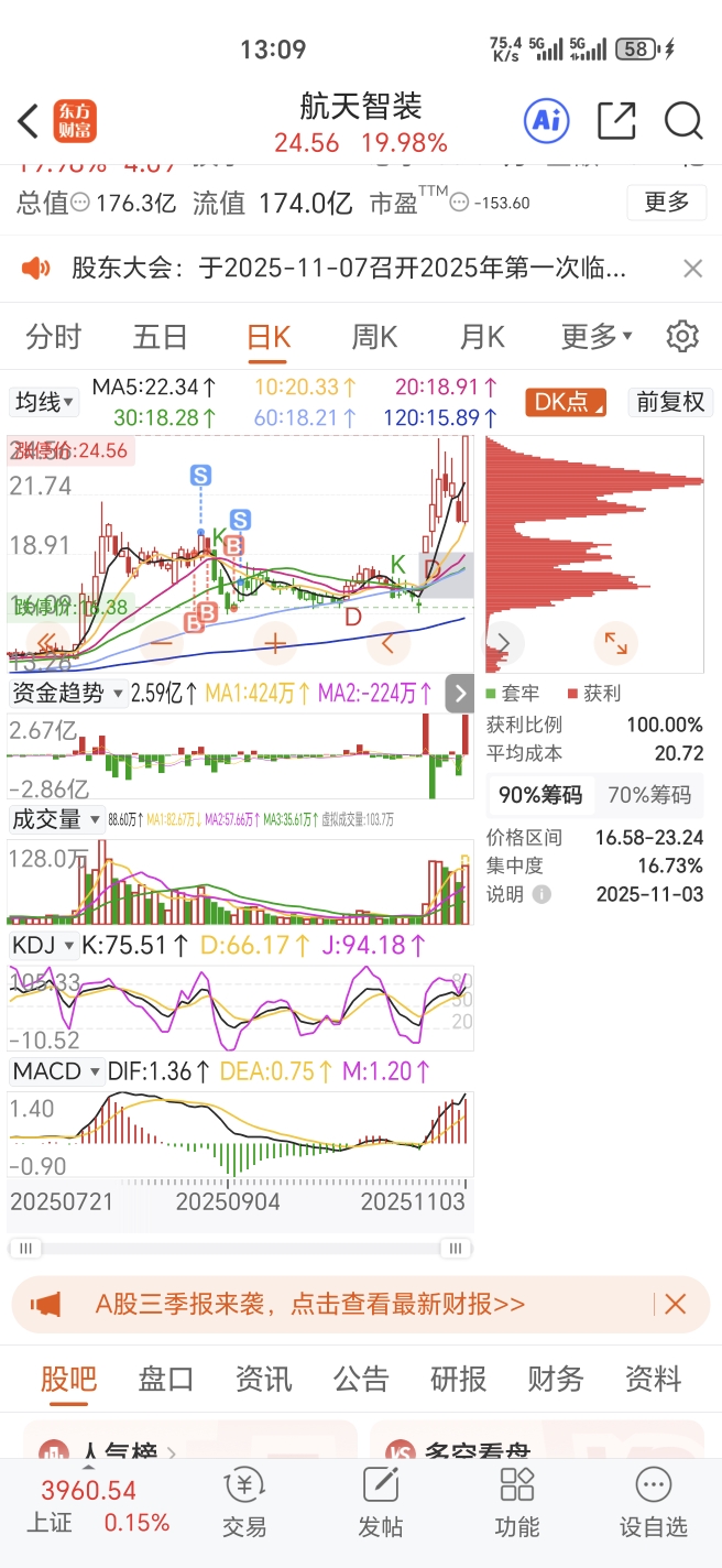 当初选2个股,$航天智装(SZ300455)$ 和$长江通信(SH600345)$ ,两个都高位接盘,后面智装先反弹上来保本卖了,你一直亏…再后来智装飞飞飞了