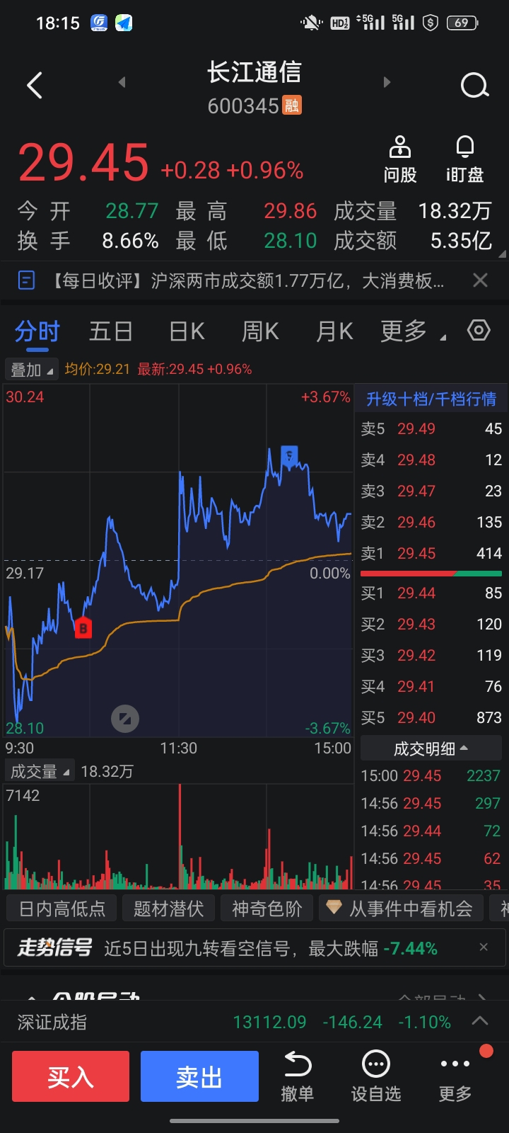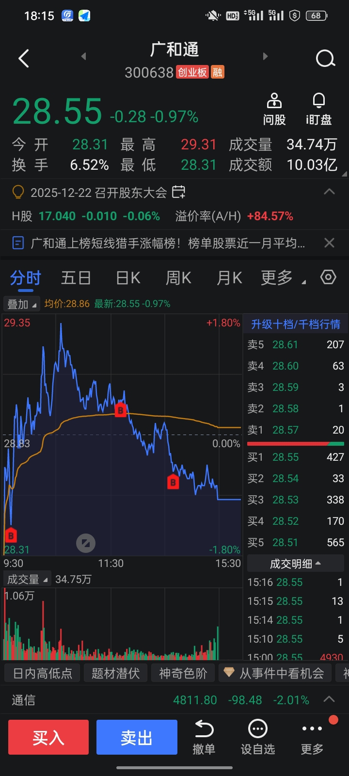 今天短线逢低加仓长江做t买回昨天逢高出掉的广和通等待主升浪到来