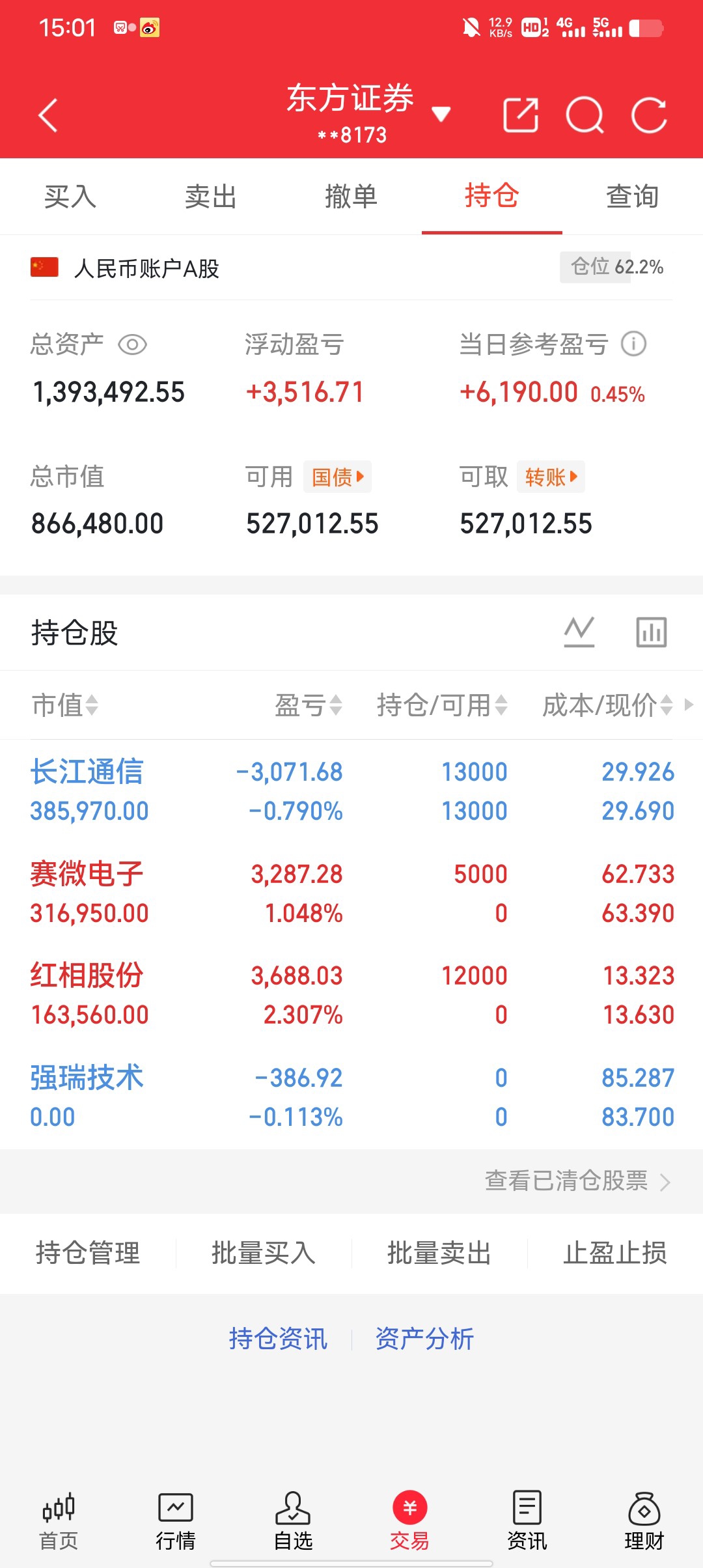 特别声明:市场有风险,投资需谨慎。本人操作仅为个人交易记录,不构成任何投资建议。请大家理性看待市场,共同交流、一起成长! #炒股日记# #强势机会# #实盘记录# #股市怎么看# $长江通信(SH600345)$ $红相股份(SZ300427)$ $赛微电子(SZ300456)$