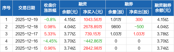 长江通信:融资余额4.15亿元,创历史新高(12-19)
