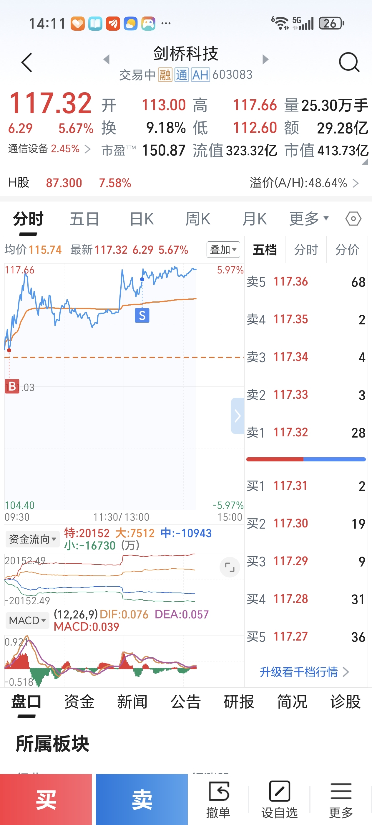 $长江通信(SH600345)$ $剑桥科技(SH603083)$ 开了眼了,卖哪个哪个涨