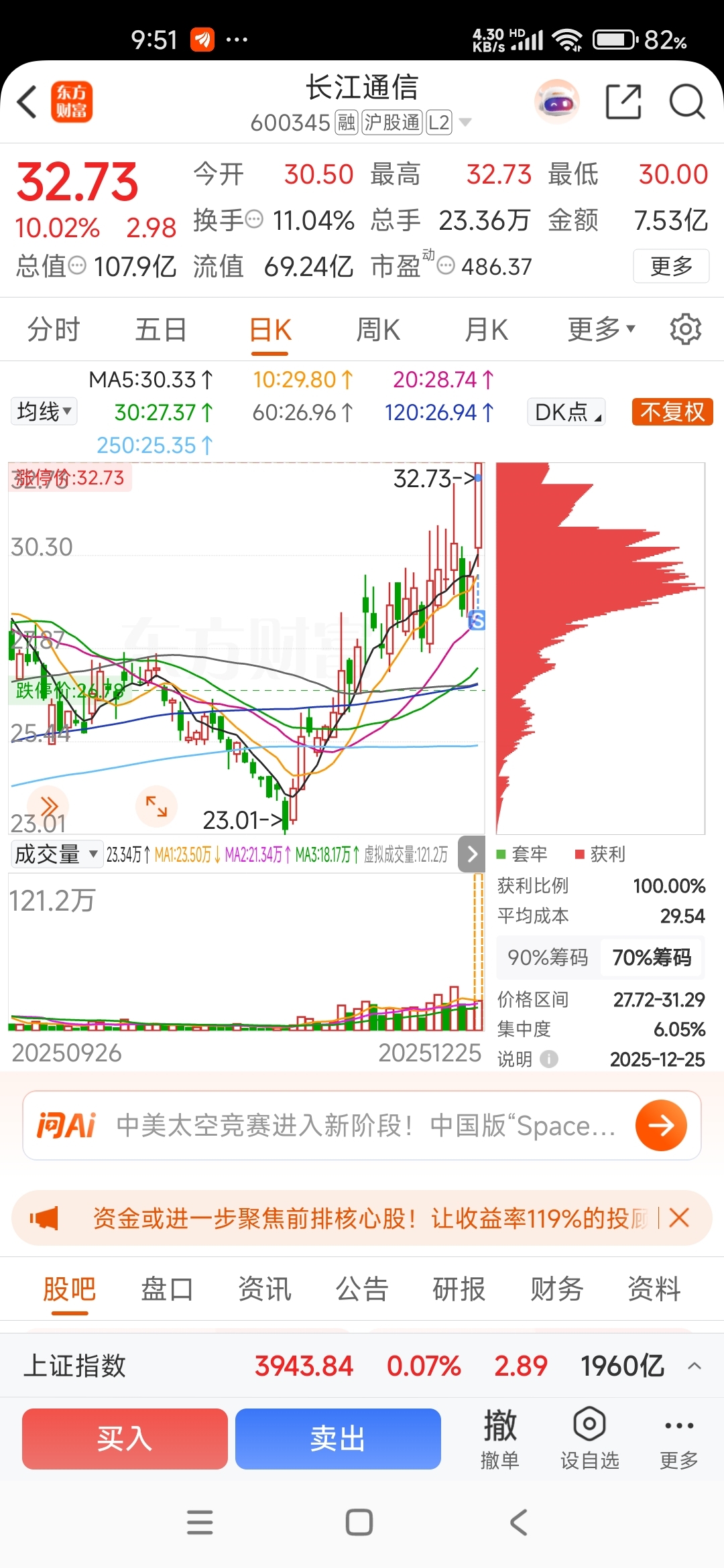 $长江通信(SH600345)$ 感谢主力,到心里价位了