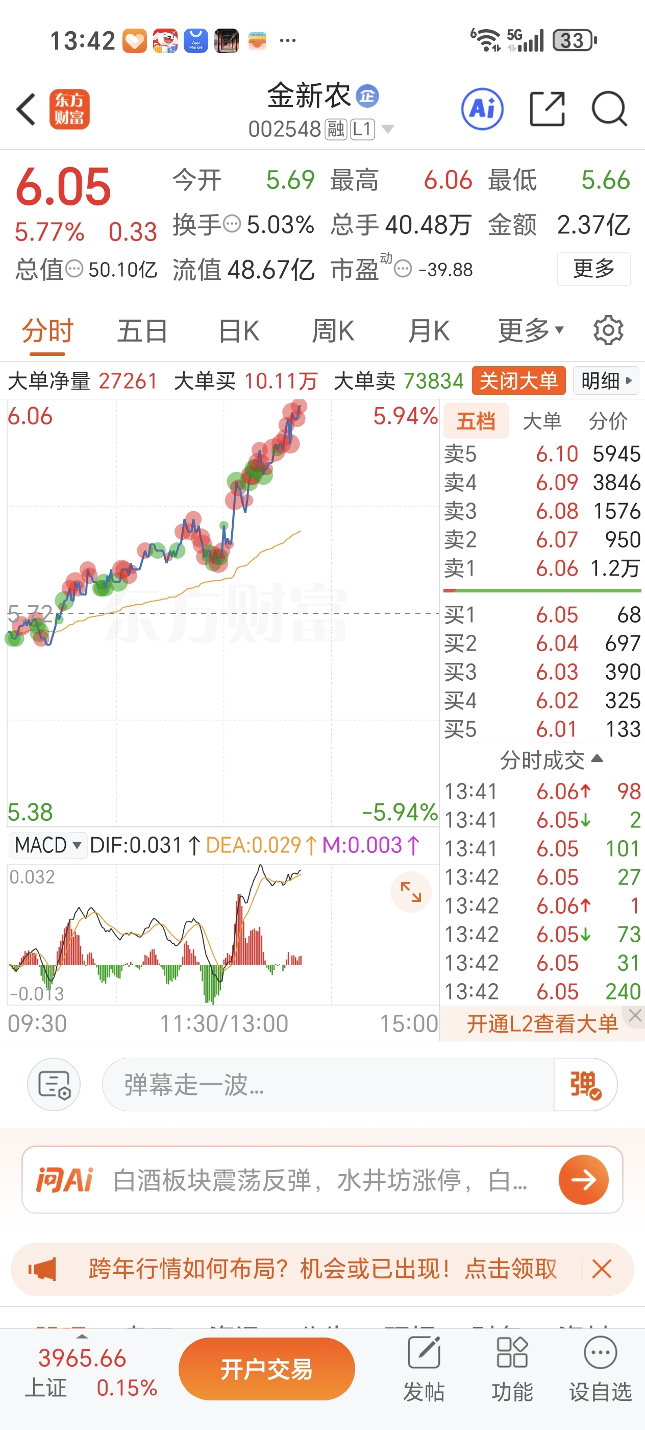 $长江通信(SH600345)$ 早上跟你们推荐的金新农,快触前高了