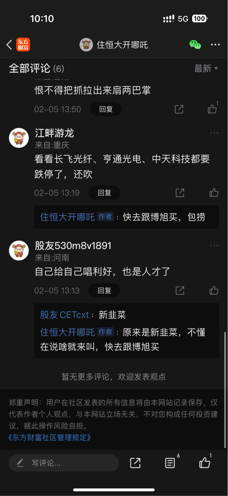 温馨提示: 1.根据《证券法》规定,禁止编造、传播虚假信息或者误导性信息,扰乱证券市场;2.用户在本社区发表的所有资料、言论等仅代表个人观点,与本网站立场无关,不对您构成任何投资建议。用户应基于自己的独立判断,自行决定证券投资并承担相应风险。《东方财富社区管理规定》