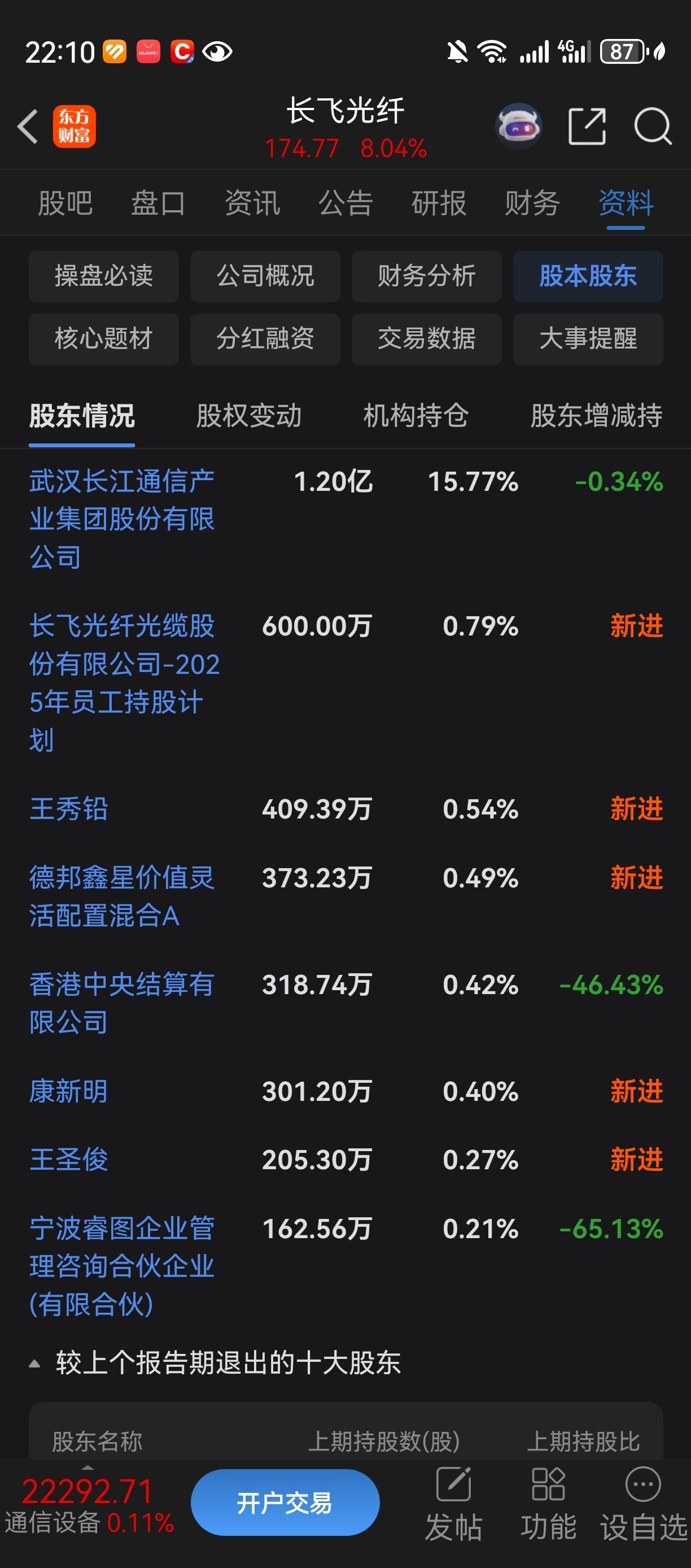 $长江通信(SH600345)$ 关长飞光纤持有市值价值210亿。