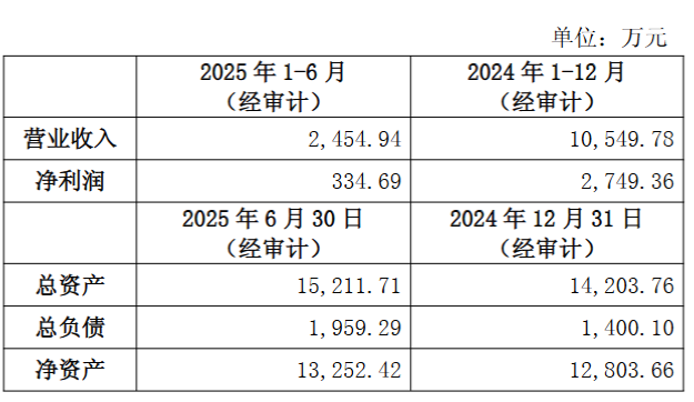 杭州晨晓成立于2008年7月,注册资本2,580.8497万元,主营业务涵盖光通信设备销售、通信设备制造、软件开发等领域。截至2025年6月30日,公司总资产15,211.71万元,净资产13,252.42万元。2024年实现营业收入10,549.78万元,净利润2,749.36万元;2025年上半年实现营业收入2,454.94万元,净利润334.69万元。